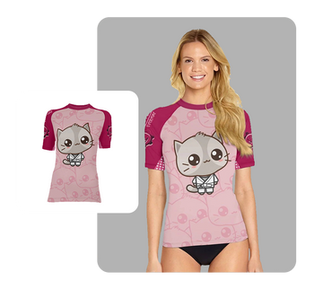 Kimeora Pink Women's Short Sleeve Rash Guard, a perfect blend of style, comfort, and functionality. Designed for female athletes and fitness enthusiasts, this rash guard is ideal for a variety of sports and activities, including MMA, Brazilian Jiu Jitsu, Muay Thai, No Gi Jiu-Jitsu, Grappling, Wrestling, Kick Boxing, Gym workouts, Crossfit, and general fitness.
