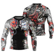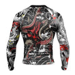 The Abyssal Oni Men's Long Sleeve Rash Guard performs whether used as a base layer during MMA sparring, a competition jersey for no-gi jiu jitsu, or a moisture-managing shirt during gym workouts. The form-fitting design eliminates distractions by keeping excess fabric at a minimum, reducing grip opportunities for your opponents.