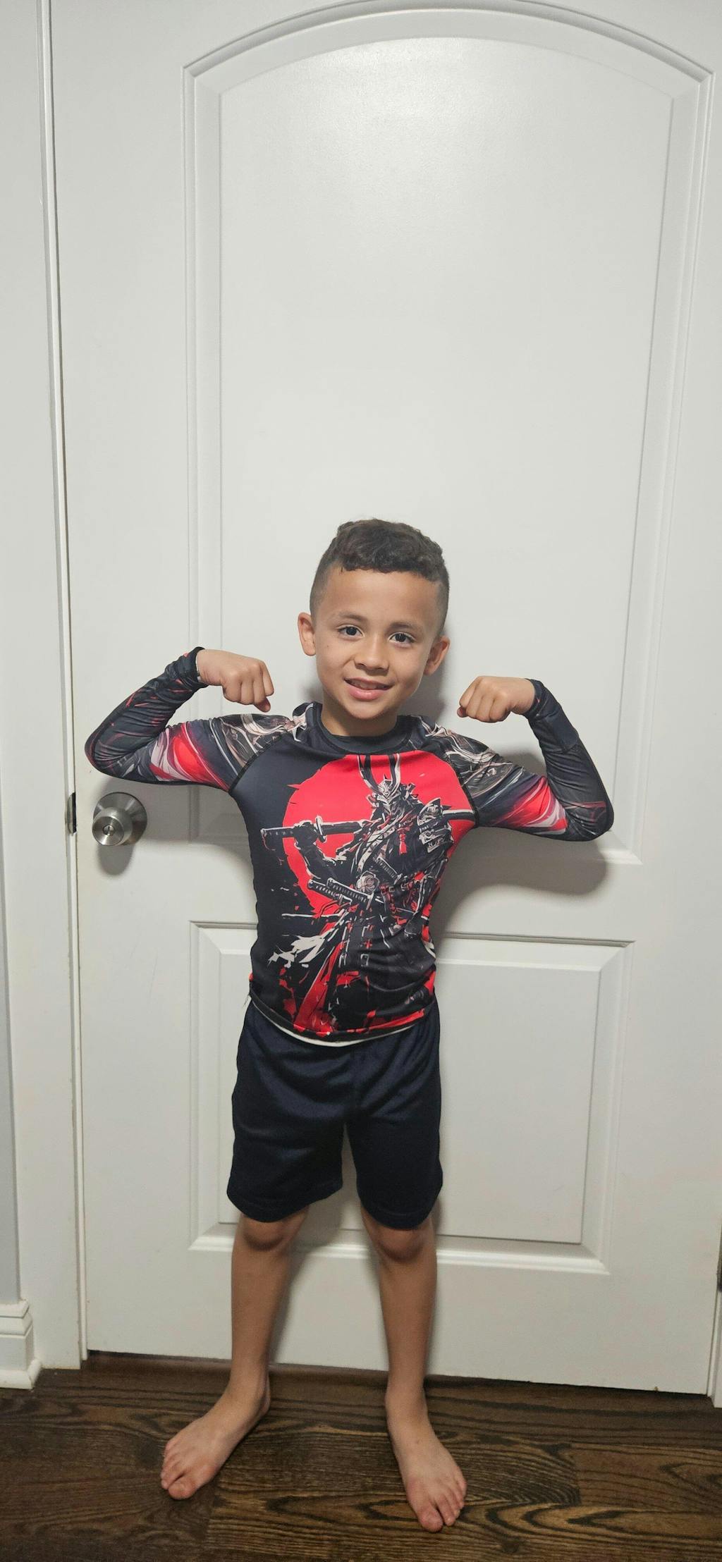 The design of this kids rash guard is truly unique, featuring elements inspired by superheroes, Norse and Roman mythology, and Asian cultures. The vibrant colors and intricate patterns make it a standout piece in any athletic wardrobe. Your child will love the way they look and feel in this dynamic and stylish rash guard.