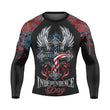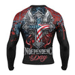 Introducing the American Independence Cross Men's Long Sleeve Rash Guard, a versatile and essential piece of athletic wear designed to enhance your performance across a variety of sports and activities. Whether you're an MMA fighter, a Brazilian Jiu Jitsu enthusiast, or simply someone who enjoys a rigorous workout, this rash guard is crafted to meet your needs.
