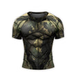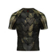 Experience unmatched flexibility and comfort with the Army Camo Shell Men's Short Sleeve Rash Guard, crafted from a blend of Polyester and Spandex. This innovative rash guard is designed to fit like a second skin, offering a slim fit that ensures full mobility for any activity, be it MMA, Brazilian Jiu Jitsu, or a workout at the gym.