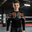 The design of this rash guard is a fusion of ancient and contemporary elements, creating a visual impact that resonates with young athletes. The vibrant colors and bold patterns are not only aesthetically pleasing but also serve as a source of motivation and inspiration.