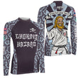 Designed with innovative fabric technology, the Choking Hazard Women's Long Sleeve Rash Guard excels in thermal regulation. It keeps you warm before training sessions and cool during breaks, ensuring that you remain comfortable throughout your workout. The fabric is also quick-drying, which helps to keep your body dry and cool, especially during intense activities like MMA, Brazilian Jiu Jitsu, and Muay Thai.