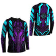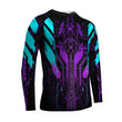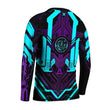 Drawing from the vibrant and dynamic world of cyberpunk, this kids rash guard features a striking ultraviolet color scheme that is sure to stand out. The design also incorporates elements from superhero lore, Norse and Roman mythologies, and the rich cultural tapestries of Asia. This unique blend of influences creates a garment that is not only functional but also visually captivating.