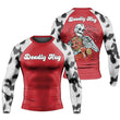 Introducing the Deadly Hug Men's Long Sleeve Rash Guard, a top-tier compression shirt designed to meet the rigorous demands of athletes and fitness enthusiasts. Crafted from a premium blend of Polyester and Spandex, this rash guard offers a second-skin fit that ensures full flexibility and freedom of movement, making it ideal for a variety of sports and activities.