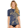 Flower Chinese Dragon Women's Short Sleeve Rash Guard