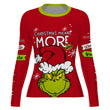 The Grinch Christmas Mean More Women's Long Sleeve Rash Guard is the optimal choice for women who demand both festive flair and high-performance features in their athletic clothing. Celebrate the holidays without compromise, knowing your gear will keep up with your training goals and active lifestyle. Upgrade your sportswear collection with a rash guard made for action—on the mats, in the gym, or at the beach.
