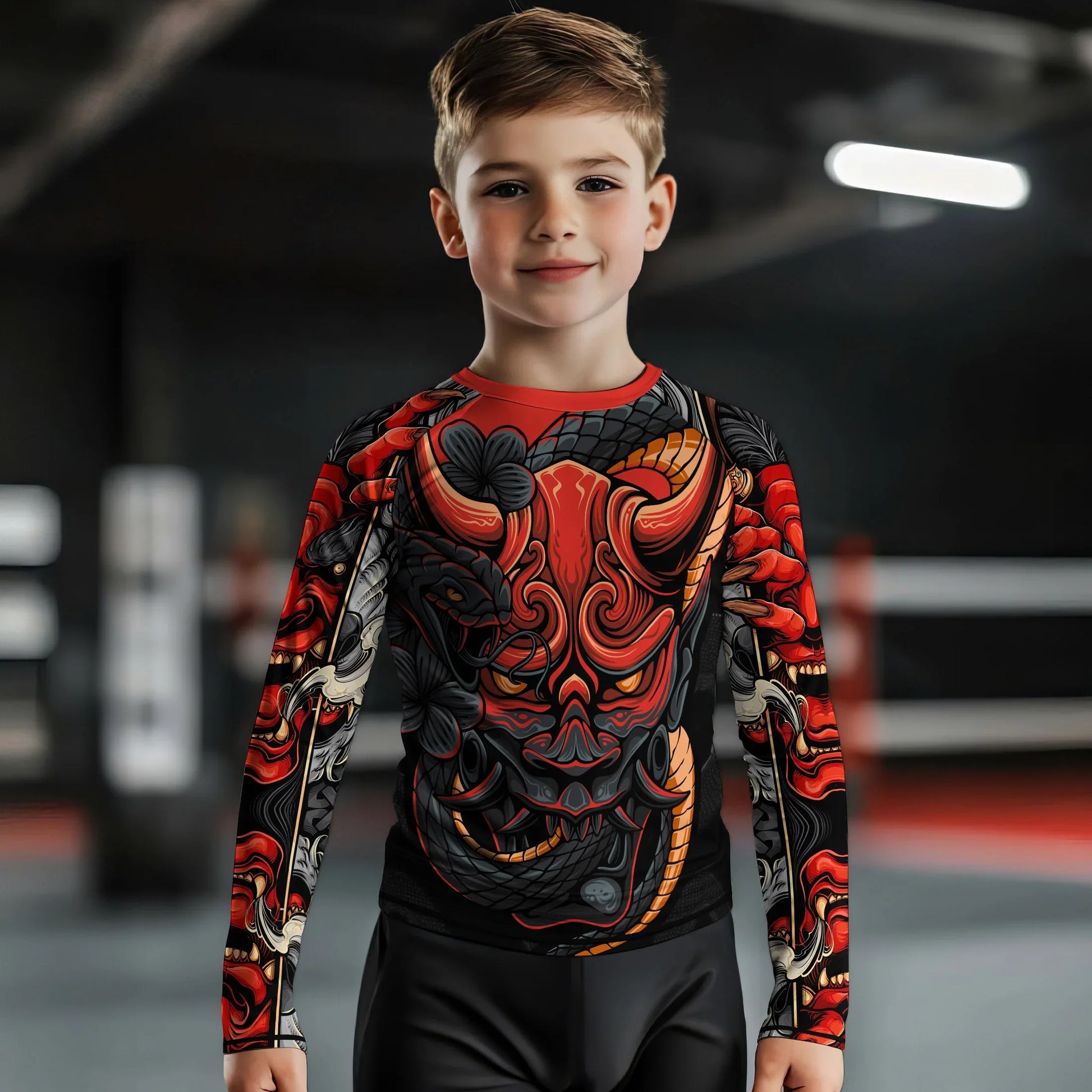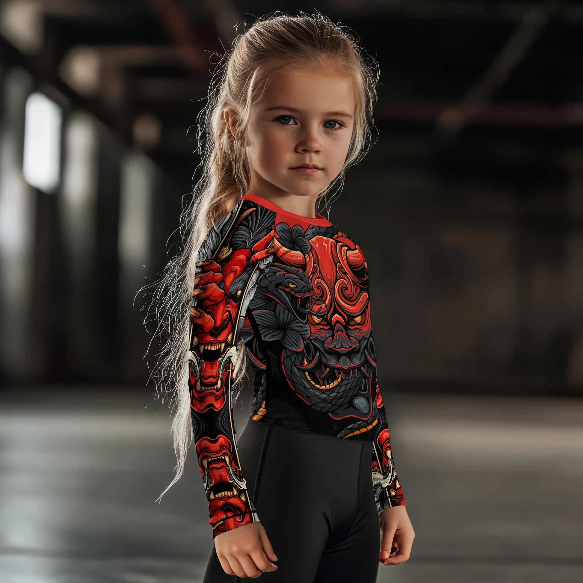 Infernal Hannya Kids Rash Guard: Unleash the Warrior Within