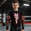 The standout feature of this kids rash guard is its unique Kitsune Mask design. Inspired by the mythical fox spirits from Japanese folklore, the Kitsune Mask symbolizes intelligence, agility, and protection. This design not only looks cool but also adds a layer of cultural significance and storytelling to the garment, making it a favorite among kids and parents alike.
