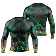 Introducing the Kratos Versus Cthulhu Men's Long Sleeve Rash Guard, a high-performance compression shirt designed to meet the rigorous demands of athletes and fitness enthusiasts. Crafted from a premium blend of Polyester and Spandex, this rash guard offers a second-skin fit that ensures full flexibility and freedom of movement, making it ideal for a variety of sports and activities.