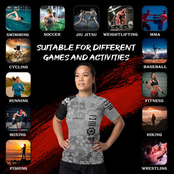 This rash guard is suitable for a wide range of sports, including MMA, Brazilian Jiu Jitsu, Jiu Jitsu, Muay Thai, No Gi Jiu-Jitsu, Grappling, Wrestling, Kick Boxing, Gym workouts, Crossfit, and general fitness activities. Its versatility makes it a valuable addition to any athlete's wardrobe.