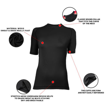 Our women's short sleeve rash guard is engineered to provide a slim fit that moves with your body. Whether you're executing complex fighting moves or striking a pose, the fabric's elasticity ensures you can do so with ease. The flatlock sewing technique used in the construction of this rash guard prevents chafing, making it comfortable to wear for extended periods.