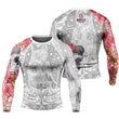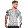 The La Santa Muerte Men's Long Sleeve Rash Guard is your ultimate companion for an array of physical activities. Made from a high-quality Polyester and Spandex blend, this rash guard inspires confidence with its second-skin fit and exceptional flexibility, allowing you to execute any fighting move or pose effortlessly.