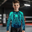Drawing from the rich mythologies of the Norse and Romans, as well as the vibrant cultures of Asia, the Leviathan of Madness Kids Rash Guard combines ancient mystique with modern athleticism. The design is inspired by superheroes and legendary tales, creating a unique and powerful aesthetic that will make your child feel invincible.