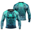 The innovative fabric technology of the Leviathan of Madness Men's Long Sleeve Rash Guard offers optimal thermal regulation. This means you'll stay warm before your training sessions and cool during breaks. The quick-dry fabric is particularly beneficial for BJJ and MMA fighters, as it helps keep the body dry and comfortable throughout intense workouts.