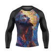 This long sleeve rash guard is not just about looks; it's designed for optimal performance. It is machine washable and maintains its quality wash after wash. The innovative fabric technology balances comfort and support, providing thermal regulation to keep you warm before training sessions and cool during breaks.