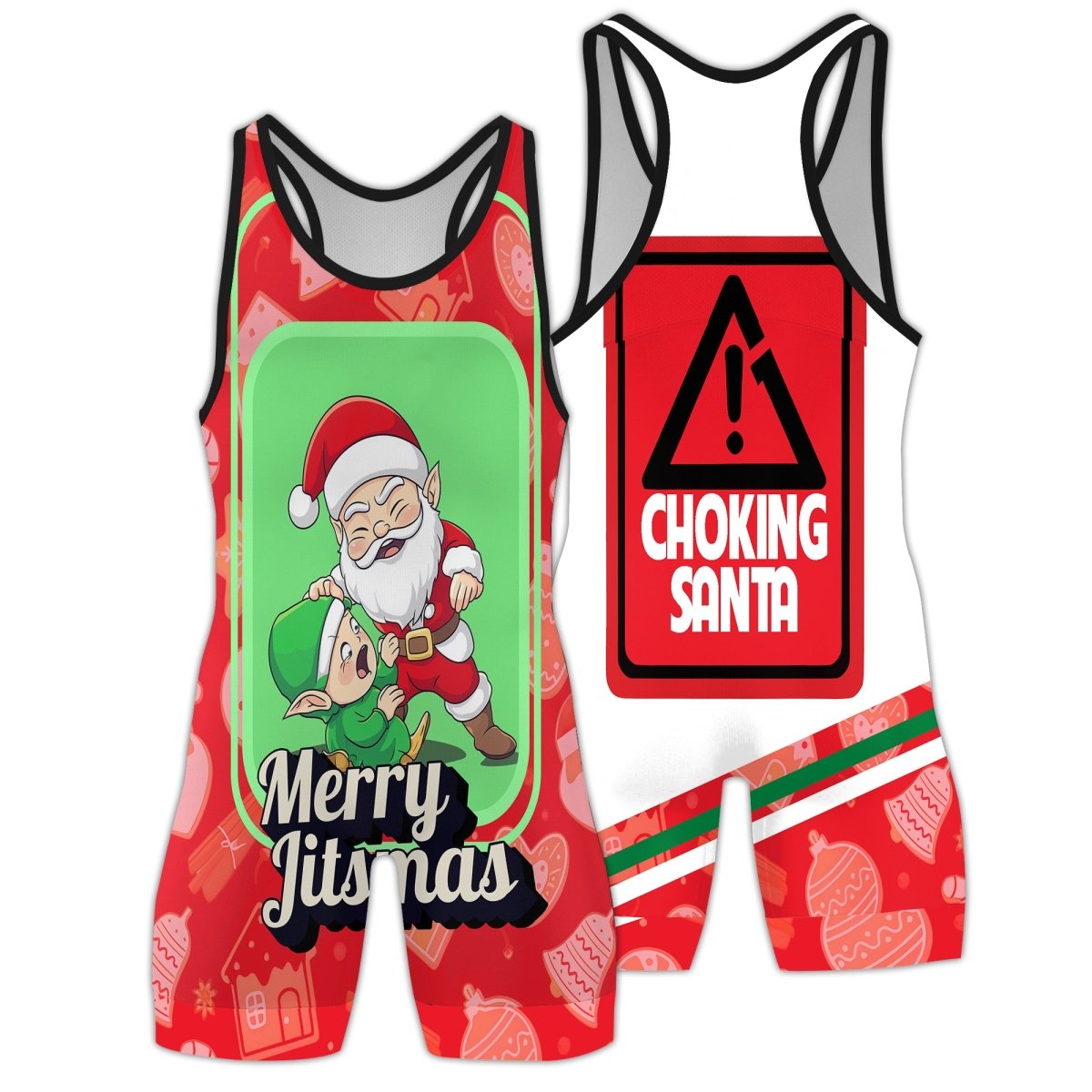 Introducing the Merry Christmas Choking Santa Wrestling Singlets, a unique and festive addition to your athletic wardrobe. Designed for enthusiasts of various athletic disciplines, including MMA, Brazilian Jiu-Jitsu, Jiu-Jitsu, Muay Thai, No-Gi Jiu-Jitsu, Grappling, Wrestling, Kickboxing, and various fitness activities like Gym Workouts, Crossfit, and General Fitness, this singlet is both versatile and stylish.