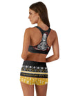 The My Blood Type is Viking Women's Padded Sports Bra is designed to highlight your natural curves. The special chest area in the front accentuates your cup lines and boob shape, offering a flattering silhouette. The black borders add a touch of elegance, making this sports bra a stylish addition to your workout wardrobe.