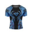 Orchid Series Floral Blue Heart Pattern Men's Short Sleeve Rash Guard