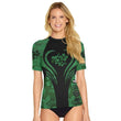 Orchid Series Floral Green Heart Pattern Women's Short Sleeve Rash Guard