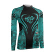 Orchid Series Viking Teal Heart Pattern Women's Long Sleeve Rash Guard