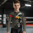 This kids rash guard draws its design inspiration from the realms of superheroes, the mythologies of the Norse and Romans, and the rich tapestries of Asian cultures. By combining the mystique of ancient myths with the dynamism of contemporary sports, this rash guard offers an exceptional and impactful design language that stands out in any athletic setting.