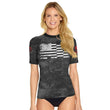 Introducing our Personalized Painting American Flag Women's Short Sleeve Rash Guard, a perfect blend of style, comfort, and functionality. This rash guard is designed to meet the needs of athletes and fitness enthusiasts who demand high performance and durability from their gear.
