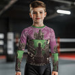 The Sandworm Beetlejuice Kids Rash Guard draws its design inspiration from the captivating worlds of superheroes, Norse and Roman mythologies, and the rich cultural tapestries of Asia. This fusion of ancient myths and modern sports creates a visually striking and meaningful design that resonates with young athletes.