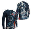 The Kraken's Garden Kids Rash Guard draws its unique design inspiration from a blend of superhero aesthetics, Norse and Roman mythologies, and the rich cultural tapestries of Asia. This fusion of ancient myths and contemporary sportswear creates a visually striking and impactful design that stands out in any setting.