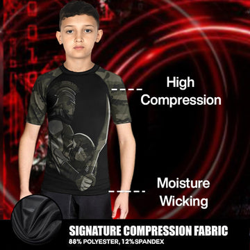 Drawing design inspiration from the realms of superheroes, the mythologies of the Norse and Romans, and the rich tapestries of Asian cultures, this kids rash guard marries the mystique of ancient myths with the dynamism of contemporary sports. The result is an exceptional and impactful design language that stands out both in the gym and on the mat.
